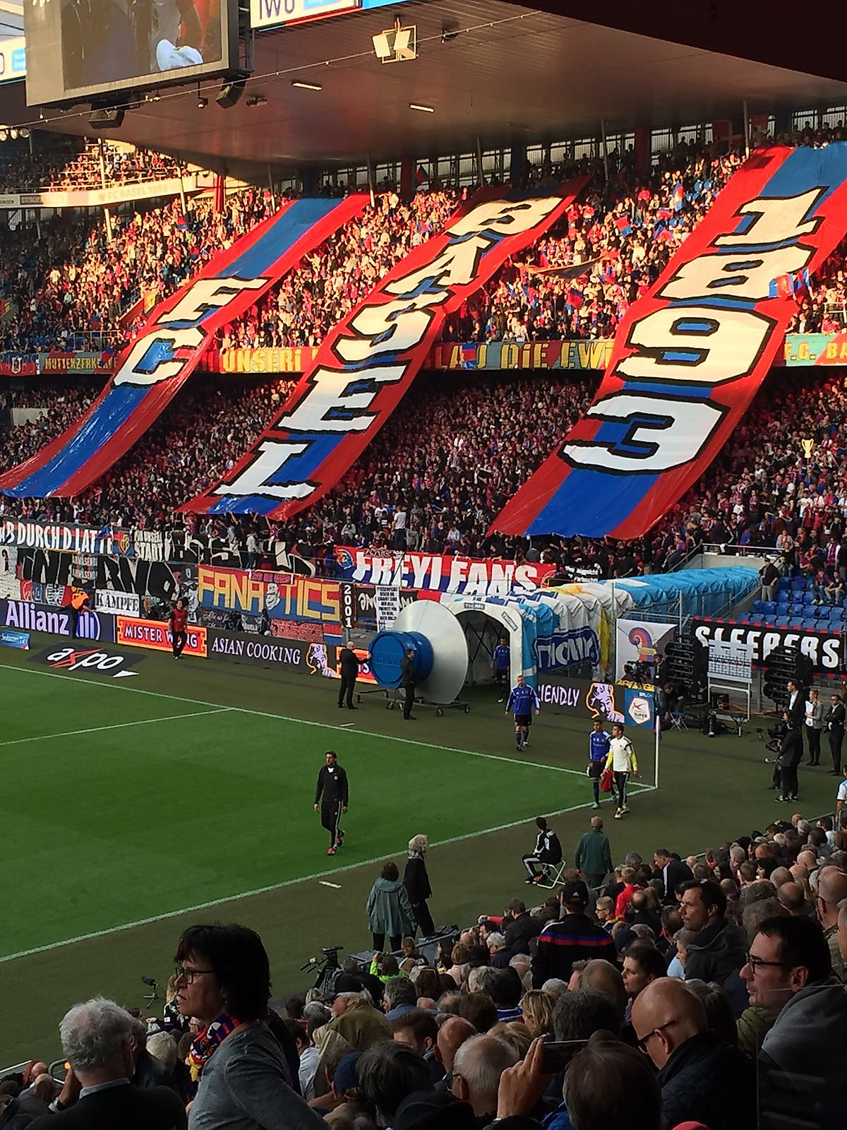 20.28: Die Mannschaften laufen ins Stadion ein. Die GC-Spalier stehen dem FCB Spalier und applaudieren der Mannschaft. Eine sehr schöne Geste der Zürcher!