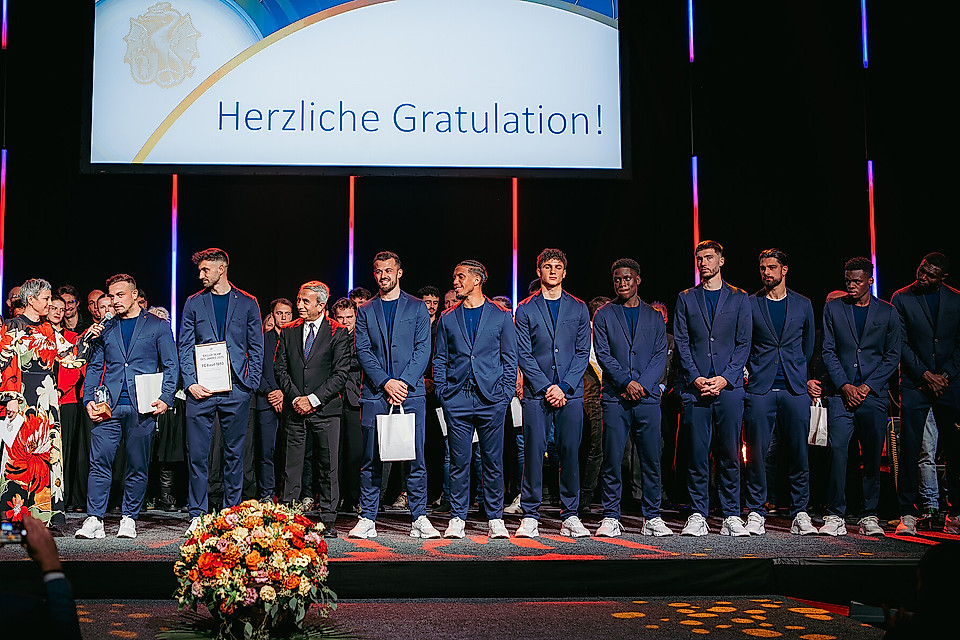 Neben der rotblauen Nummer 10 waren an diesem Abend in der St. Jakobshalle auch Jonas Adjetey, Albian Ajeti, Moussa Cissé, Léo Leroy, Metinho, Kevin Rüegg, Dominik Schmid und Marin Soticek sowie Teile des Staffs der 1. Mannschaft der letzten Saison zugegen – stellvertretend für das gesamte rotblaue Meisterteam. Denn auch dieses wurde ausgezeichnet und zum «Basler Team 2025» gekürt.