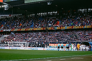 Der FC Basel 1893 gewann nach frühem Rückstand gegen den FC Winterthur am Sonntag, 30. Juli 2023, mit 5:2. Rotblau erwischte einen denkbar schlechten Start beim ersten Meisterschaftsheimspiel dieser Saison. Nach gerade einmal acht Minuten gingen die Gäste aus Winterthur durch Matteo di Giusto in Führung. Nach diesem Kaltstart konnte sich der FCB aber steigern und war in der Folge auch das spielbestimmende Team. Kurz vor der Pause erntete das Heimteam die Früchte für diese Bemühungen: Finn van Breemen traf mit einem Distanzschuss zum Ausgleich. Den Schwung dieses Erfolgserlebnisses konservierte das Team von Timo Schultz dann auch über die Pause. Auch nach dem Seitenwechsel war Rotblau dominierend und ging folgerichtig nach einer knappen Stunde durch einen Kopfballtreffer Dan Nodyes in Führung. Und nur wenig später schloss Jean-Kévin Augustin einen Konter zum 3:1 ab. Schluss war damit aber noch lange nicht. Zuerst verkürzte Basil Stillharft mit einem sehenswerten Weitschuss auf 2:3. Und als man sich schon auf eine nervenaufreibende Nachspielzeit einstellte, traf Fabian Frei in eben dieser zum 4:2. Er schloss dabei einen Angriff über Anton Kade und Sergio López ab. Der FCB-Captain setzte dann auch wenig später mit einem verwandelten Foulpenalty zum 5:2 den Schlusspunkt unter eine unterhaltsame, spektakuläre Partie, in der sich Rotblau die ersten Punkte in dieser Saison sicherte.