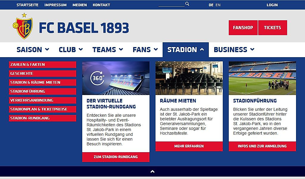 Ab sofort können Sie den St. Jakob-Park zu jeder Zeit besuchen – zumindest virtuell! Sehen Sie sich das Joggeli aus Perspektiven an, die Sie zuvor noch nie hatten, besuchen Sie Orte im Stadion, die Sie zuvor noch nie aufgesucht haben oder finden Sie Ihren eigenen Platz im virtuellen Stadionrundgang. Dieser bietet Ihnen die Möglichkeit die Innenräume des Hospitality-Bereichs anzusehen oder die Perspektive von der Platzmitte einzunehmen. Wir wünschen Ihnen viel Spass bei der Erkundung des St. Jakob-Park.