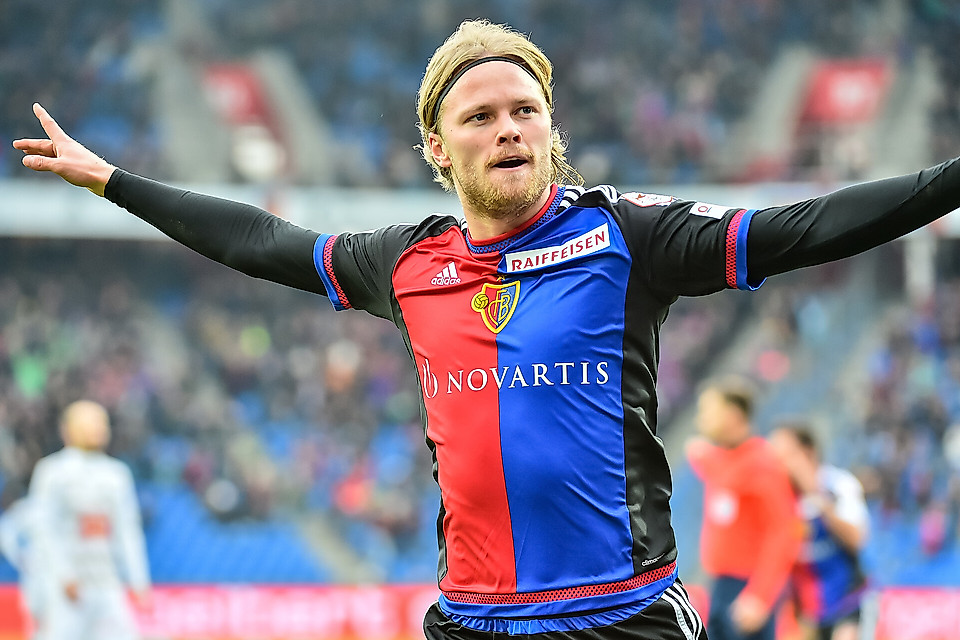 Hier bejubelt Bjarnason das 1000. Super-League-Tor des FCB, das er erzielte und damit Basler Fussballgeschichte schrieb: Birkir Bjarnason.