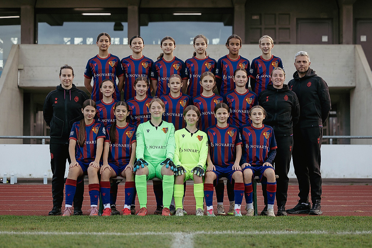 Mittlere Reihe (v.l): Nadine Krattiger (Torhüterinnentrainerin), Alessia Troller, Mia Kyburz, Viktoria Barner, Jil Moser, Alina Piras, Lina Brugger (Assistenztrainerin), Benoît Schickler (Cheftrainer).